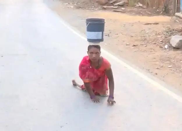 बस्तर : घुटनों के बल सड़क पार कर पानी भरने को मजबूर दिव्यांग महिला! वायरल VIDEO ने खोली योजनाओं की पोल