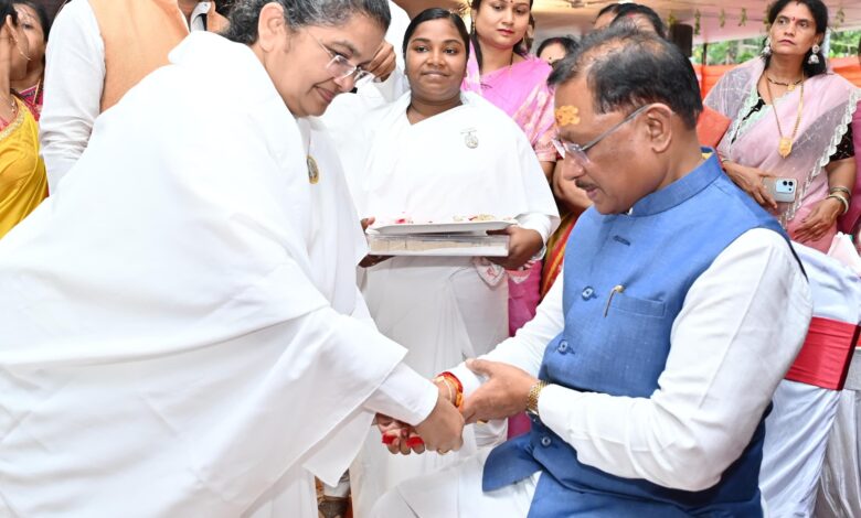 रक्षाबंधन के पावन पर्व पर मुख्यमंत्री विष्णु देव साय को ब्रह्मकुमारी बहनों ने बाँधी राखी