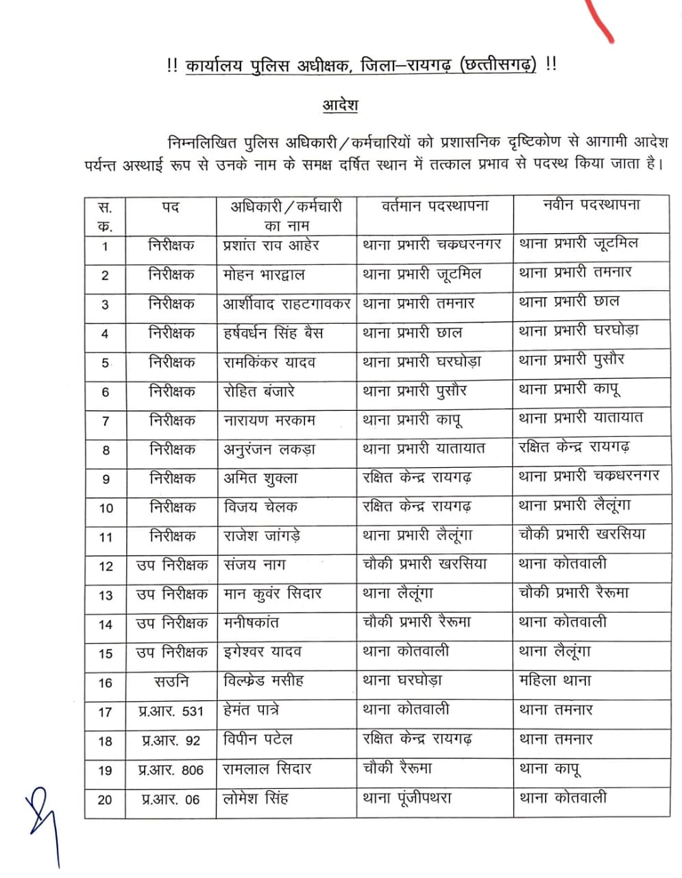 CG Police Transfer: SP ने 11 निरीक्षकों सहित किया 32 पुलिसकर्मियों का तबादल आदेश जारी, देखें लिस्ट…