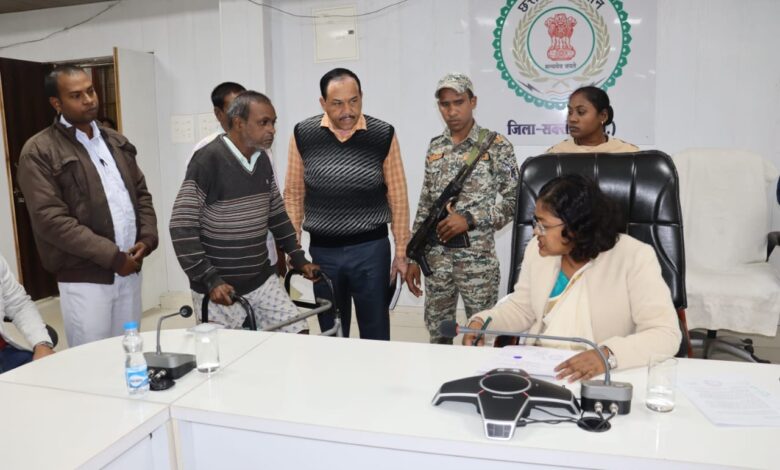 सक्ती। कलेक्टर नूपुर राशि पन्ना ने कलेक्टर कार्यालय में जनदर्शन के माध्यम से जिले के दूर दराज के गांवों से आये विभिन्न लोगों की समस्याएं सुनी। जनदर्शन में आज कुल 05 आवेदन प्राप्त हुए है।