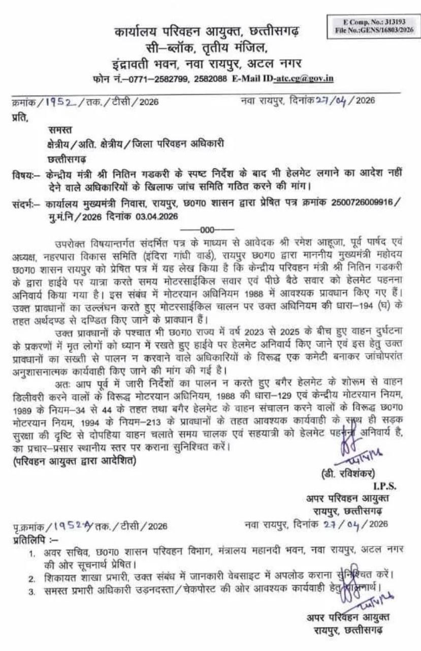 यह निर्देश ऐसे समय जारी किए गए हैं, जब हेलमेट नियमों के कमजोर पालन को लेकर लगातार चिंता जताई जा रही थी। पूर्व पार्षद एवं नहरपारा विकास समिति के अध्यक्ष रमेश आहूजा द्वारा दिए गए ज्ञापन में भी प्रवर्तन की ढिलाई का मुद्दा उठाया गया था और संबंधित अधिकारियों के खिलाफ कार्रवाई की मांग की गई थी।