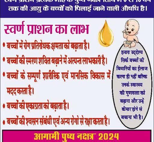 रोग प्रतिरोधक क्षमता बढ़ाने 3 अगस्त को स्वर्णप्राशन…